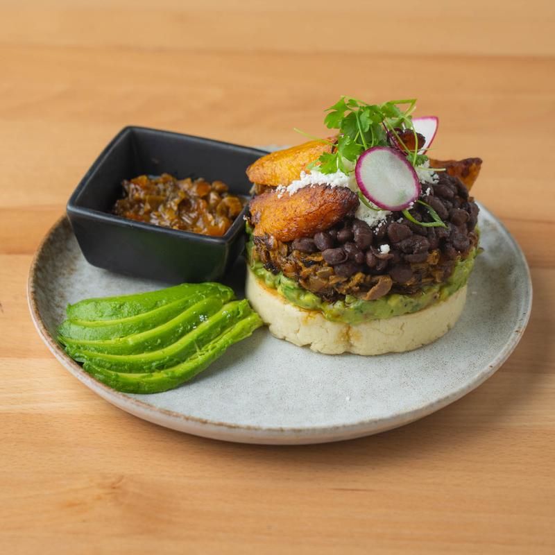 Arepa served with Shredded Beef that is cooked with our Sofrito Salsa, house made Agogigi avocado salsa ,Black Beans, Sweet Plantains, & Cotija Cheese.
